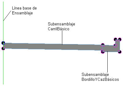 Para realizar la definición de un objeto de ensamblaje, normalmente se añaden varios objetos de subensamblaje a lo largo de una alineación, como carriles, bordillos o cunetas. Cada subensamblaje puede conectarse al punto de la línea base del ensamblaje, a cualquier punto de desfase del ensamblaje o a otros subensamblajes que ya están asociados al ensamblaje. También se puede asociar un subensamblaje a estos puntos mediante una elevación o un desfase relativos del punto.