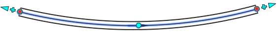 La ilustración siguiente muestra un pinzamiento de desviación seleccionado y las indicaciones visuales de desviación, que señalan que se puede desplazar la tubería.