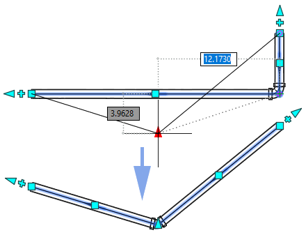 Las tuberías conectadas en un tramo de tubería también se desplazan y ajustan sus vértices para adaptarse a la nueva ubicación de tubería.