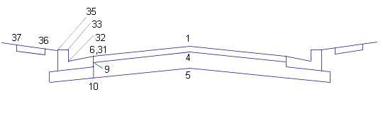 Todos los vínculos de la rasante de secciones sin pavimentar y los vínculos de sub-base en secciones pavimentadas. En la mayoría de carreteras, los vínculos Datum siguen la rasante y la sub-base sin pavimentar desde el punto de unión izquierdo hasta el derecho. Estos vínculos crearán la superficie utilizada para calcular los volúmenes en desmonte y terraplén. |