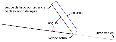 | distancia | La distancia desde el vértice actual de la figura. Introduzca este valor en las unidades de distancia de la base de datos de levantamientos actual. |