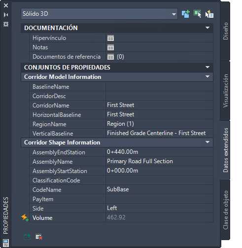 Por defecto, Autodesk Civil 3D incluye tres definiciones de conjuntos de propiedades que se aplican a cuerpos y sólidos 3D: