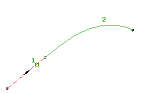 En función de la solución que se desee, una espiral fija puede estar definida por diferentes parámetros, que no se pueden editar tras la creación. Cuando se modifica la entidad de enlace (1), el parámetro de definición (2) no cambia.