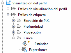Los objetos de cruce utilizan estilos de etiqueta de cruce de visualización del perfil.