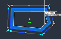 Al añadir pendientes al embalse, se modifica su pendiente y su capacidad general. Por defecto, el embalse se crea con dos contornos: el superior y el inferior. El cuadro de diálogo Propiedades de embalse permite añadir contornos interiores entre los predeterminados. Las pendientes existentes se pueden editar para obtener una mayor precisión.