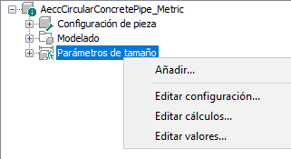 - Haga doble clic en la familia de piezas Tubería de hormigón o bien haga clic en el botón Modificar tamaños de piezas