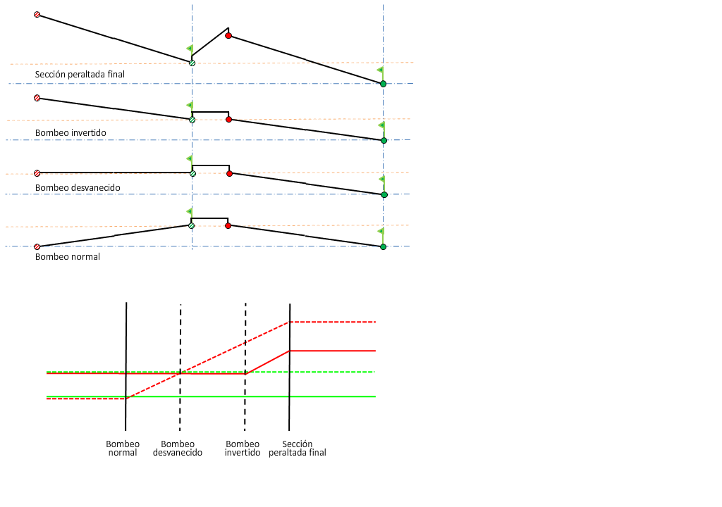 Para obtener más información sobre los diagramas de peralte, consulte Acerca de los métodos de giro del eje de rotación de peralte.