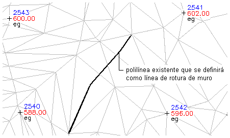 El cuadro de diálogo Añadir líneas de rotura se cierra. Un mensaje solicita que se designe una polilínea.