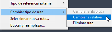 Compruebe todos los archivos de proyecto antes de migrar a Forma Data Management. En Civil 3D, compruebe que todas las referencias externas estén enlazadas con Ruta relativa. En el Administrador de referencias externas, se pueden seleccionar y modificar varios archivos mediante el comando Cambiar a relativa.