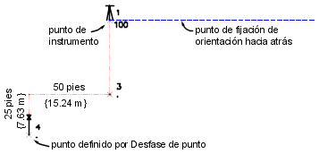 El punto 4 se ubica en una distancia de desfase de 15.240 y una distancia adelante de 7.620 desde el punto 3.