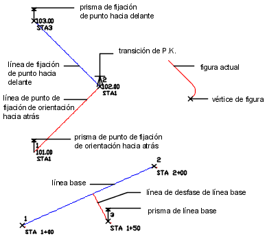 La configuración de Gráficos interactivos permite controlar la visualización de los componentes de topografía durante la importación y entrada de datos de levantamiento.