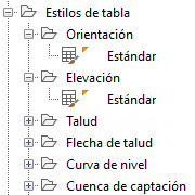 Para expandir la colección y ver los estilos de tabla del objeto, haga clic en el cuadro +/-. Algunos objetos disponen de varios niveles de estilos de tabla.