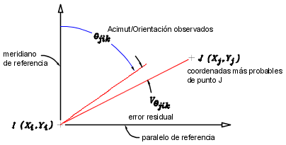 El cambio en las coordenadas de cada observación se expresa en las siguientes aproximaciones de series de Taylor de la ecuación de observación de acimut/orientación: