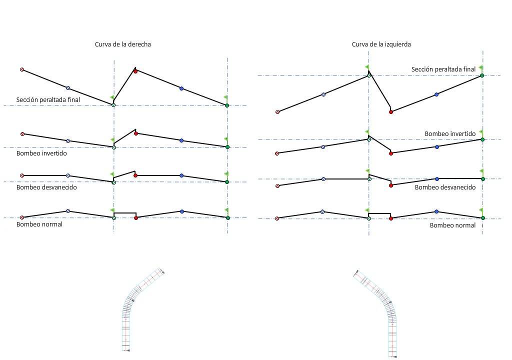 Para obtener más información sobre los diagramas de peralte, consulte Acerca de los métodos de giro del eje de rotación de peralte.
