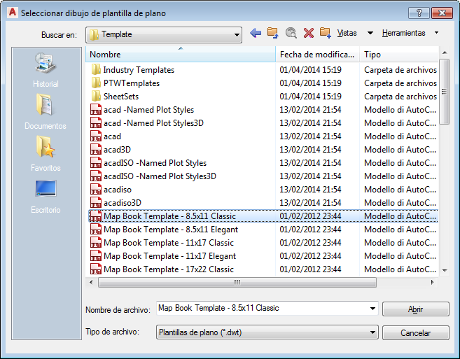 Abra una plantilla de libro de mapas existente y comience a personalizarla especificando la impresora o el trazador.