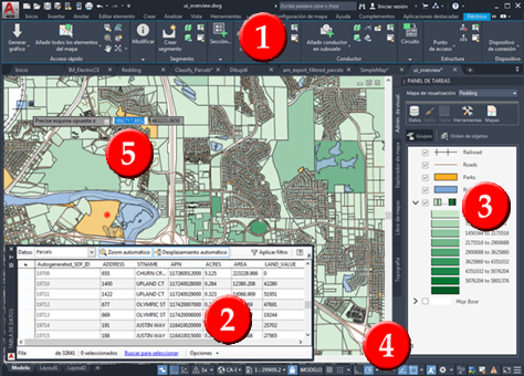 Los elementos principales de la ventana del producto Conjunto de herramientas AutoCAD Map 3D