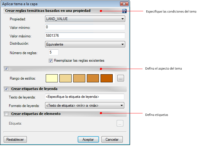 Utilice el cuadro de diálogo Aplicar tema a la capa para diseñar el tema.