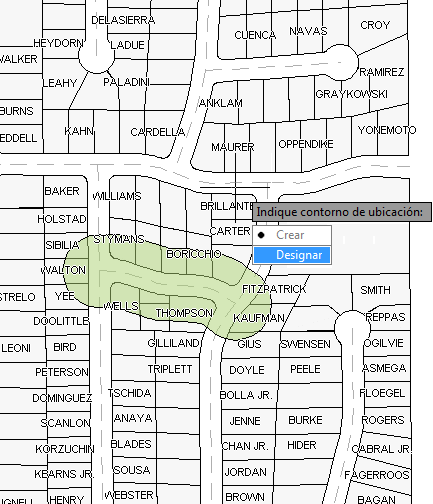 Haga clic en Seleccionar en la solicitud. Haga clic en el búfer para designarlo como condición de ubicación.