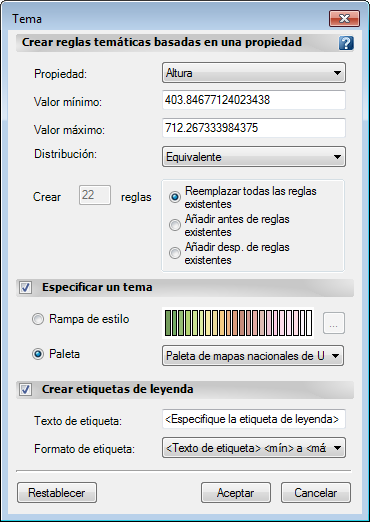- En el cuadro de diálogo Tema, bajo Especificar un tema, haga clic en Paleta y seleccione Paleta de mapas nacionales de USGS.