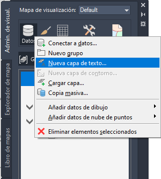 Las capas de texto se crean en el Administrador de visualización, de un modo muy similar a cómo se crea una capa de dibujo.