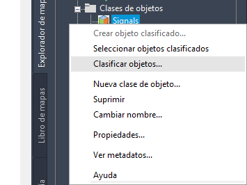 Haga clic con el botón derecho en la clase de objeto Signals en el Explorador de mapa del Panel de tareas y seleccione Clasificar objetos.