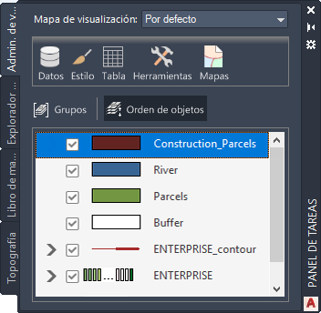 - En el Administrador de visualización, haga clic en Ordenar objetos.