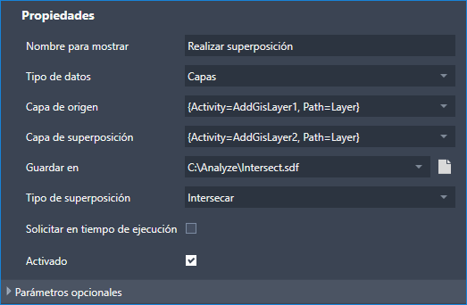 Si el flujo de trabajo requiere parámetros para alguna de sus actividades, muestra una solicitud.