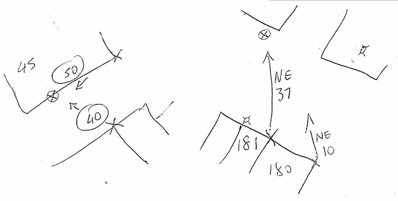 Bocetos de campos típicos con puntos definidos por distancia-distancia (izquierda) y orientación-orientación (derecha).