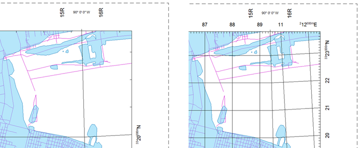 Puede añadir un sistema de referencia para el mapa en el espacio papel. Los sistemas de referencia incluyen rejillas de referencia y redes geográficas. Una rejilla de referencia es una rejilla que se superpone a un mapa. Una