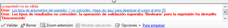 Al guardar una expresión, se comprueba siempre para estar seguros de que es válida. Aunque también puede comprobar si la expresión es válida antes de guardarla.