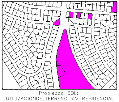 Las polilíneas cerradas extraídas por una consulta se rellenan con un patrón de sombreado sólido de color magenta.