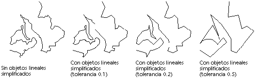 La simplificación de objetos lineales elimina de una polilínea todos los puntos posibles, pero manteniéndola dentro del margen de tolerancia original.