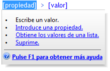 • Si conoce los nombres de las propiedades, los valores y los operadores que desea, introdúzcalos directamente.