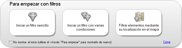 Para evitar que los botones para comenzar se muestren cada vez que se crea una expresión, active la casilla de verificación No mostrar al inicio. Si lo desea, podrá volver a visualizarlos más adelante con solo hacer clic en Para empezar.