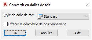 . La fiche de travail Convertir en dalles de toit affiche les styles de dalle de toit existants dans votre dessin en cours.