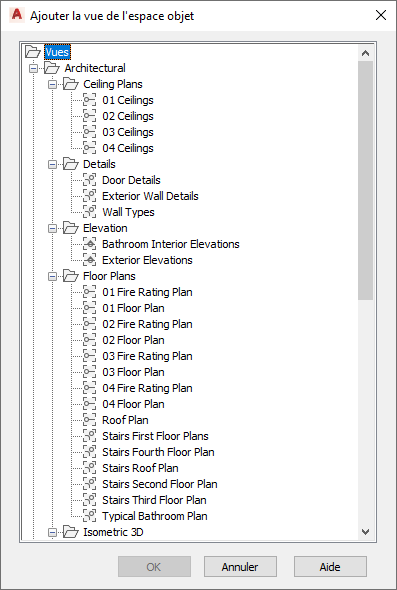 - Dans la boîte de dialogue Ajouter la vue de l'espace objet, sélectionnez le dessin de vue du projet dans lequel placer la vue de l'espace objet et cliquez sur OK.