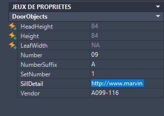 Cette procédure permet d'entrer les valeurs des propriétés manuelles dans le jeu de propriétés d'un ou plusieurs objets. Par exemple, pour entrer une remarque s'appliquant à plusieurs portes d'un dessin, vous pouvez sélectionner les portes et entrer la remarque en tant que données dans Notes.