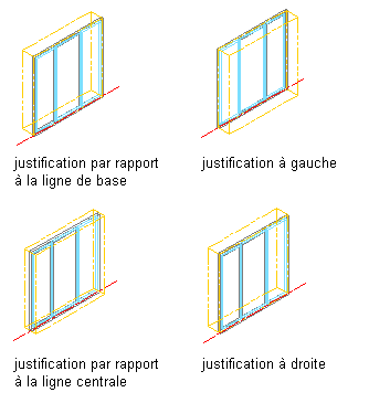 4. Indiquez l'alignement du mur-rideau par rapport au côté gauche, au côté droit, au trait d'axe ou à la ligne de base du mur à partir duquel il est créé.