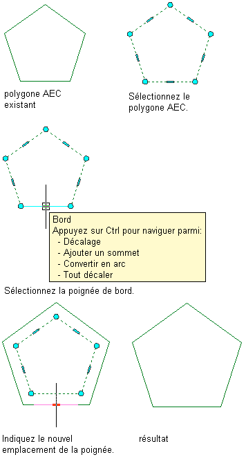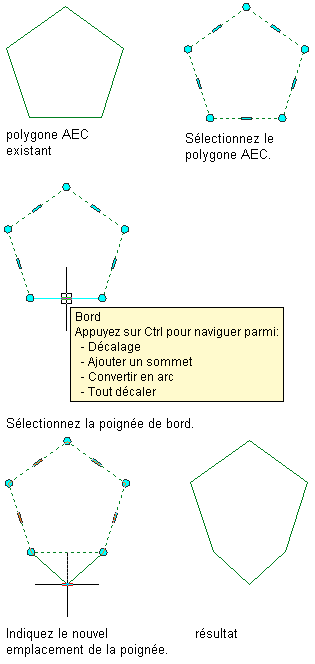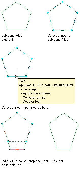 Décalage des bords d'un polygone AEC à l'aide de sa poignée de sommet