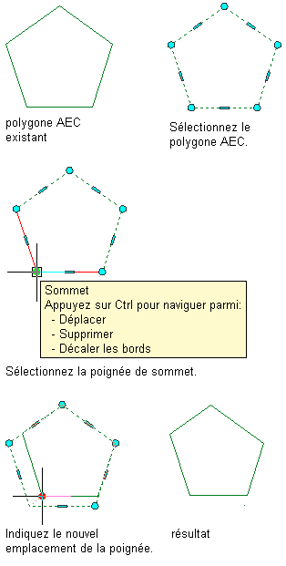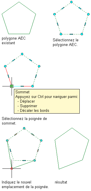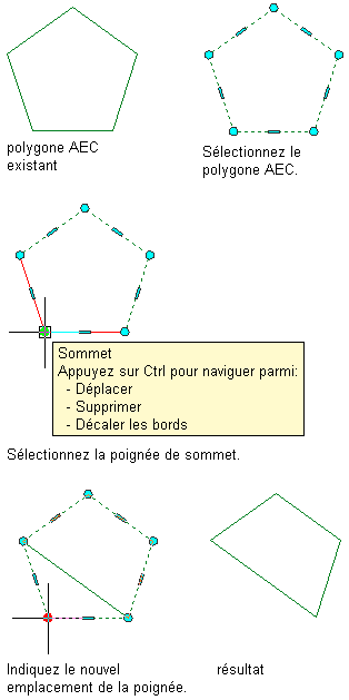 Déplacement du sommet d'un polygone AEC à l'aide de sa poignée de sommet