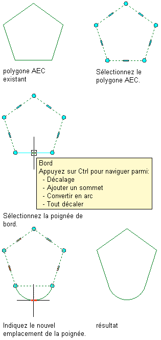 Conversion du bord d'un polygone AEC en arc à l'aide de sa poignée de bord