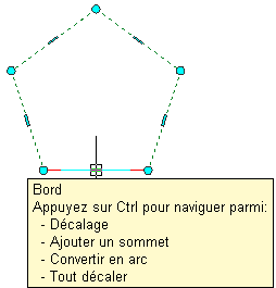 | ajouter un sommet et créer un bord | appuyez sur la touche CTRL pour basculer en mode d'édition Ajouter un sommet. Placez le bord à l'emplacement désiré et cliquez ou entrez une valeur et appuyez sur la touche Entrée. |