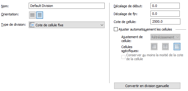 7. Sélectionnez le type de division Cote de cellule fixe.