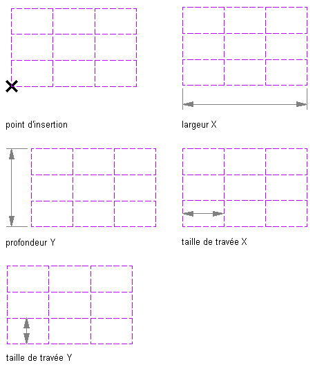 - Dans le dessin, désignez un point d'insertion pour le coin inférieur gauche de la grille de positionnement rectangulaire.