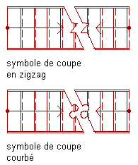 La représentation en plan pour les escaliers comprend des options pour les symboles de coupure.
