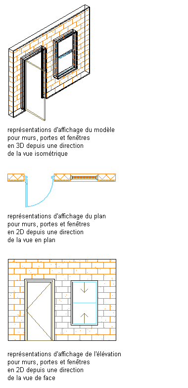 C'est en général lors de la création de l'objet que l'utilisateur décide de ses propriétés physiques. Spécifiez, par exemple, la taille d'une porte et son emplacement sur un mur. Vous contrôlez les propriétés graphiques d'un objet dans sa représentation d'affichage. Il est possible de définir plusieurs représentations d'affichage pour un même objet.
