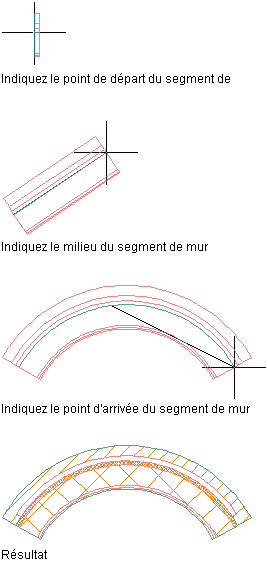 Dessinez des segments droits ou en arc, changez l'orientation ou la justification d'un segment de mur pendant que vous le dessinez, ou repositionnez un segment de mur en vous basant sur le décalage d'un composant de mur.