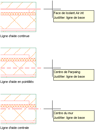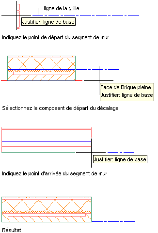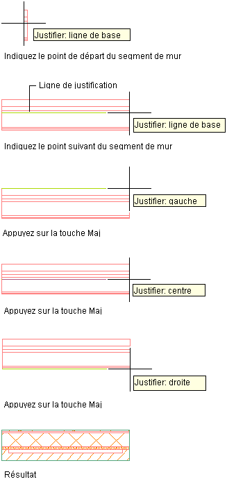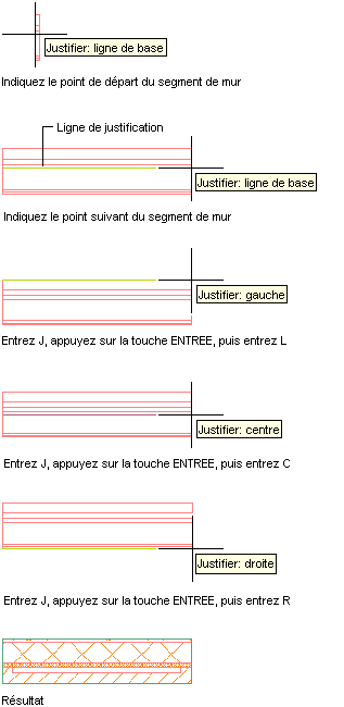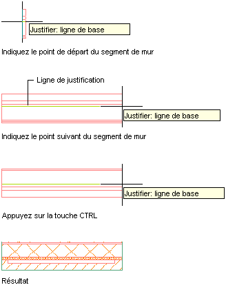 sélectionner les points qui définissent la ligne de base du mur sélectionnez Ligne de base pour l'option Justifier.