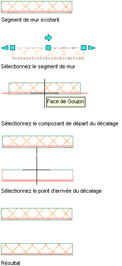 décaler le mur par rapport à la face d'un composant de mur placez le curseur sur le mur jusqu'à ce que la face du composant recherché soit surlignée en rouge et cliquez une fois.