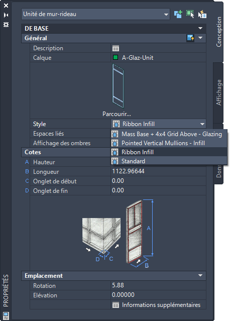 1. Sélectionnez l'unité de mur-rideau dont vous voulez modifier le style.